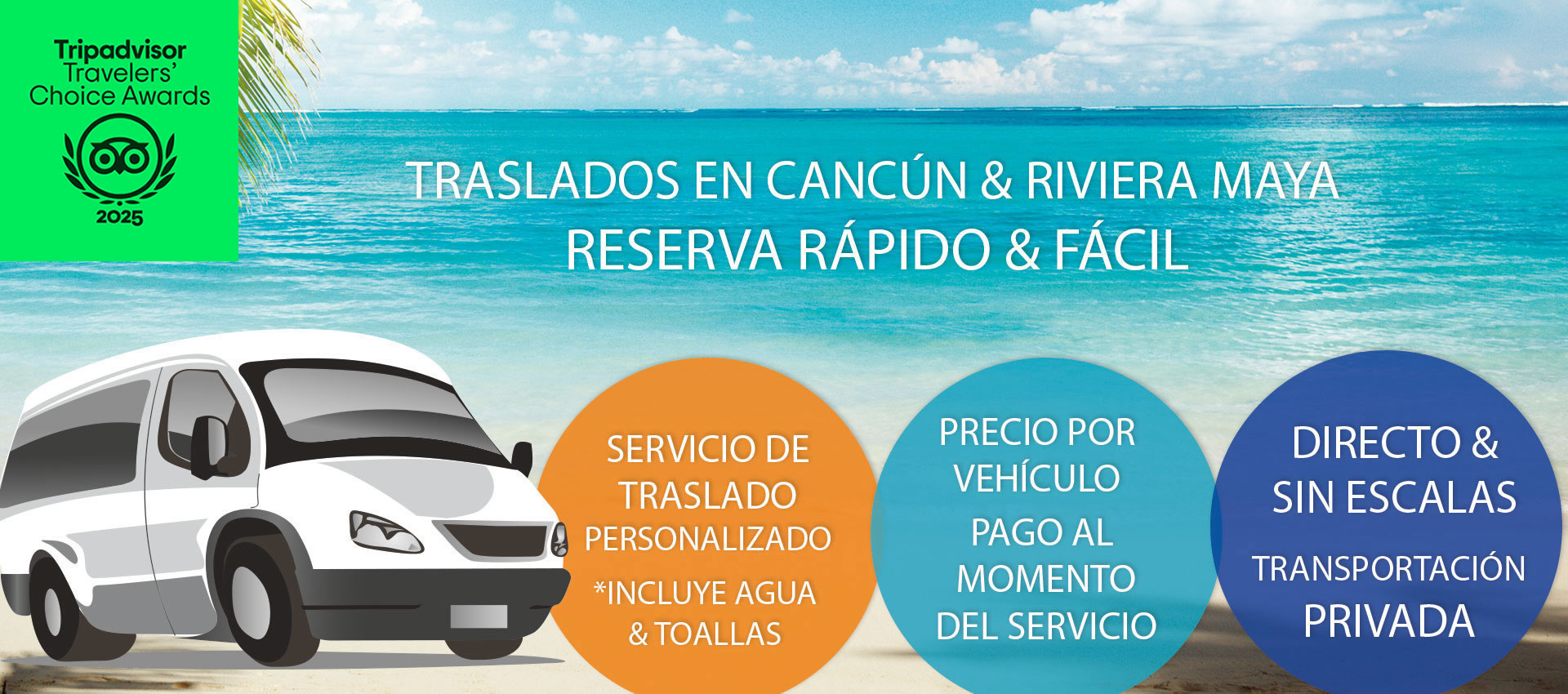 Todos los servicios son privados, y su pago es por vehículo, de acuerdo al numero de pasajeros. No hay cargos extras!
